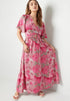 Met de zomer in zicht is deze maxi-jurk perfect voor de collectie van jouw kast! Van deze prachtige bloemenjurk in de kleuren groen en roze word je toch meteen vrolijk! De jurk is voorzien van een mooie V-hals. De jurk is perfect te combineren met meerdere gekleurde accessoires of sieraden. Zo kun je deze jurk super tof stylen met statement oorbellen voor een leuk feestje of festival. Deze jurk is gemaakt van 100% polyester. De jurk is verkrijgbaar in de maten S - M - L.
