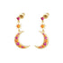 Deze oorbellen zijn perfect voor je volgende feestje! Schattige zilveren oorbellen met een hanger in de vorm van een sterretje en een maantje. De oorbellen zijn gemaakt van witgoud verguld koper. Deze sparkle oorbellen zijn ingelegd met kleine zirkonia steentjes in de kleur wit. De oorbellen zijn 3,2 cm lang en 1,4 cm breed. De oorbellen wegen 3,7 gram. Naast deze wit/zilver kleur is de oorbel verkrijgbaar in drie andere kleuren: groen/goud, fuchsia/oranje/goud en wit/goud.
