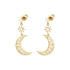 Schattige zilveren oorbellen met een hanger in de vorm van een sterretje en een maantje. De oorbellen zijn gemaakt van witgoud verguld koper. Deze sparkle oorbellen zijn ingelegd met kleine zirkonia steentjes in de kleur wit. De oorbellen zijn 3,2 cm lang en 1,4 cm breed.