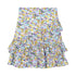 Rok met ruches in bloemenprint. De rok is gemaakt van polyester en heeft elastiek achter in de taille. Verkrijgbaar in blauwe kleur.